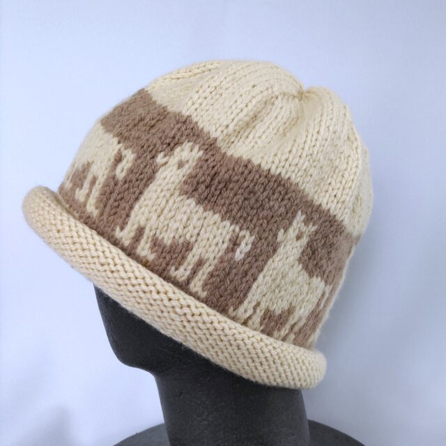 地色とアルパカはコナラのドングリで染めた毛糸で、淡いサンドベージュ色です。