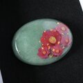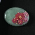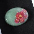 天然石グリーンアベンチュリンと椿、金箔の帯留め ポニーフック ブローチ 24k