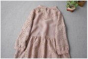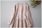 リネン100%贅沢総刺繍ポケット付きシンプルな大人可愛い五分袖ワンピース♪ -