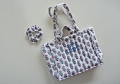 2点限定!キルティングトートバッグ ハンドブロックプリント シュシュ付き♪ œillet(ウイエ)インド綿