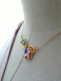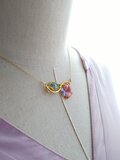 1980年代頃のフランスヴィンテージ、くすんだピンク色とパープル色のエナメル塗装の愛らしいネックレスです。