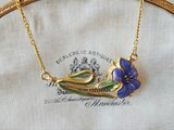 フランスヴィンテージ エナメル・Blueパープルのお花 チョーカーネックレス