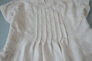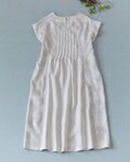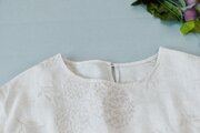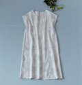 リネン100%贅沢総刺繍ポケット付きシンプルな大人可愛い五分袖ワンピース♪ -