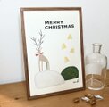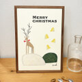 絵本の1ページに出てきそうな石の上のトナカイのクリスマスポスターです☆