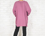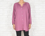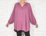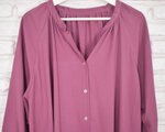 秋色ピンクパープル 長袖スキッパーボタンシャツ