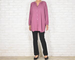 柔らかくしなやかなレーヨンツイル生地で仕立てた、落ち着いたピンクパープル系の上品なシャツです。