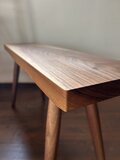 一枚板のウォールナット無垢材を座面に同じウォールナット材の脚がとても綺麗な家具です