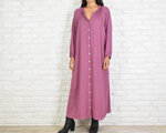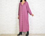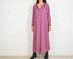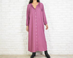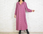 シンプルなスキッパー長袖ワンピース <ピンクパープル>