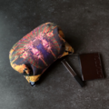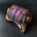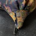 猫柄に特化したテキスタイルデザインを展開している【虹猫本舗】の浮世絵シリーズに、日本の伝統的な織物・西陣織金襴を合わせた猫型ポーチです。