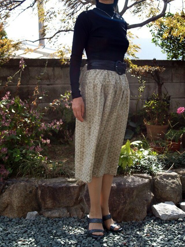 着物リメイク:ひまわりいっぱいグリーンのギャザースカート