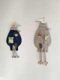 ・芯材の厚手ボール紙・ポリ綿を布で縫い込んだ軽い壁飾り。