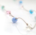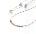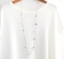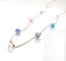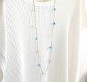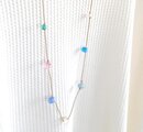今まで作りためてきた小さな雫型のガラスビーズたちを、コットンコードで繋ぎ合わせて制作したロングネックレスです。