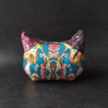 猫柄に特化したテキスタイルデザインを展開している【虹猫本舗】の浮世絵シリーズに、日本の伝統的な織物・西陣織金襴を合わせた猫型ポーチです。