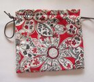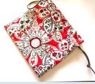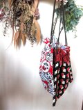 米国生地 red 地に 伸びやかな花 葉っぱ模様 巾着ポーチ