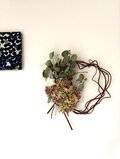 ベニツルでリースをつくり、ユーカリやミナヅキアジサイなどを組み合わせました
