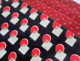 チェリーのドットにホワイトの四角が重なり不思議な色を醸し出し