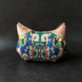 猫柄に特化したテキスタイルデザインを展開している【虹猫本舗】の浮世絵シリーズに、日本の伝統的な織物・西陣織金襴を合わせた猫型ポーチです。