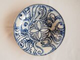 釘彫りで文様を施し、呉須で絵付けをしました。