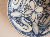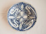 釘彫りで文様を施し、呉須で絵付けをしました。