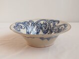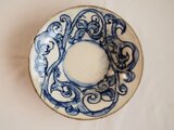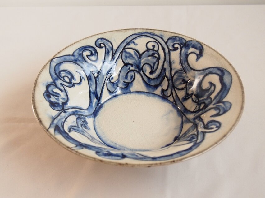釘彫りで文様を施し、呉須で絵付けをしました。
