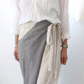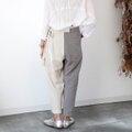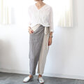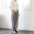 ヘンプコットンとストライプリネンのバイカラーラップパンツ【生成り✖️グレー】