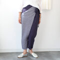 ヘンプコットンとストライプリネンのバイカラーラップパンツ【ネイビー✖️ネイビー】