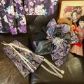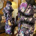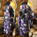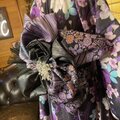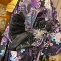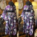 漆黒に瑞々しい紫と水色が映える、ゴシックエレガントな振袖リメイクワンピースセットです。