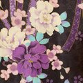 【 振袖 着物 ロングワンピース ドレス 2部式ローズ/バラ作り帯 リメイク 洗える 化繊 パールつけ襟 フリルシフォン帯揚げ 和洋折衷 ハンドメイド レトロ 古着 桜や梅の小花が葡萄紫〜藤色へと連なるグラデーションで咲き誇る FKW-32】