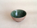 この作品は、信楽の土でろくろ成形→碗の表面を削る→模様を削り出す→素焼→模様の部分に白い泥を埋め込み余分なところをふきとる→内釉(青磁釉)→本焼の工程を経て仕上げています。ほどよい厚みがあり、持ちやすく口当たりも滑らかです。内側に美しく貫入が入っています。