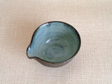 味わい深い土の質感に内側の青釉が美しく映える片口です。
