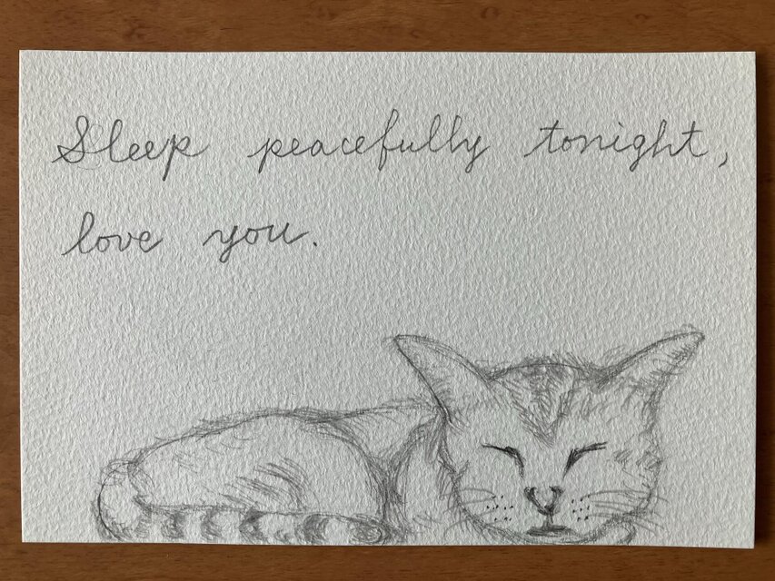 猫と愛の言葉 ドローイング Sleep peacefully tonight, love you.