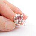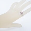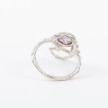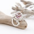 小さな水晶の中に、ヘマタイトやゲーサイト、カコクセナイト等がきらめく個性的なルースを、小花の飾りで彩った可憐なリングに仕上げました。