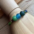 留め具脇にグリーンと渋い瑠璃色ビーズをポイントに。