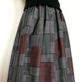 幾何学柄の大島紬をタックスカートにリメイクしました。