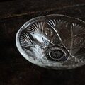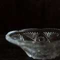 波縁で素敵◆十二芒星の文様。昭和中期 プレスガラス小鉢 古民家 古道具 レトロ 【ザラ付き有り】