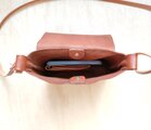 バッグには、かぶせのフラップと内側にホックボタンがあるので、中身が飛び出しにくい仕様になっています。