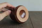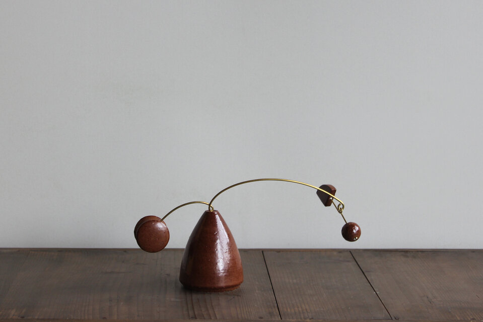 ロクロ成形した土台、モチーフを、真鍮棒と組み合わせています。