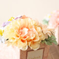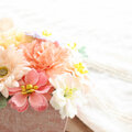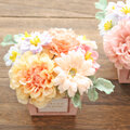やさしい色合いのダリアをメインに、ガーベラ・カーネーション・小花を組み合わせた