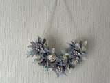 籐のリース 半月型のパープル系のリース(クリスマスリース)