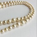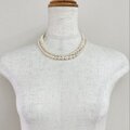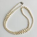 こちらは貝素材の原玉に、オリジナルカラーのパール塗料にて何層にも渡り重ね塗りを施した日本製貝パールネックレスになります。パールカラーはきめ細かい質感とやさしい艶感が特徴のホワイトベージュ色。ほのかに色づいた薄めのオリジナルベージュカラーです。パールサイズは直径約5~10mm玉を使用したグラデーションデザインで、長さは服の上から手軽にお使い頂ける全長約87cmとなっております。