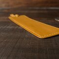 四方を薄く漉いた革を張り合わせ、同系色の糸で縫い合わせています。