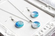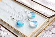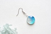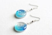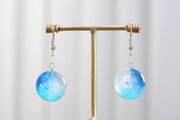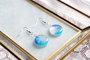 光沢のあるホワイトを二種類のブルーで彩り、シルバーのラメを散らした爽やかで清々しいピアス。