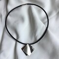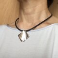 Silver950 の四角い板を折り曲げて片面はひらりと風に揺れるように、もう片面はシンプルな平面 の2ウェイのチョーカーです。