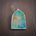 小鳥が屋根にとまったおうちの壁掛けです。壁全体にガラスが溶け動き、深く掘った所に色がたまって面白い風情になりました。