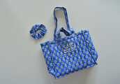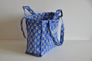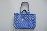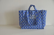 新作!1点限定!キルティングトートバッグ ハンドブロックプリント シュシュ付き♪ bleu roi(ブル・ロワ)