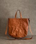 2way トート&ショルダーバッグ キャメル イタリアンレザー <F>