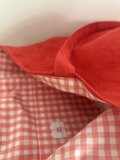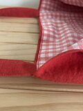 オレンジが混じったような赤で大人かわいいお色です。裏地には、check&stripeのコットンパピエを使用。チラッと覗くギンガムチェックが可愛いです♩