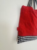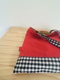 独特な風合いと質感のある天日干しリネンとcheck&stripeの張りのあるコットンパピエのギンガムチェックで、可愛く仕上げたミニbagです。