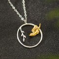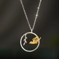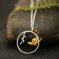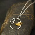 <受注制作>鳥と枝のペンダント - 小さな鳥が静かに佇んでいるように見える N151