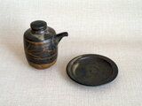 落ち着いた色と絵柄が味わい深い、モダンな佇まいの注器とお皿のセットです。